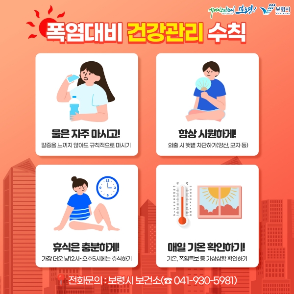 [충청뉴스큐] 보령시 보건소는 무더위가 기승을 부리는 오는 8월 말까지 홀몸노인·거동 불편자 등 취약계층의 건강 악화를 예방하기 위해 맞춤형 건강관리를 강화한다.