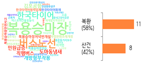 주요내용은 생활민원 교통불편사항 도로관리 체육시설 운영 관련이었으며 그 중에서도 한국타이어 화재에 따른 악취 및 소음문제, 복용승마장 지속적인 강습 개설 요구, 버스노선 연장, 도로보수 및 학교주변 유해성 광고 제거 등 생활민원이 많았다.