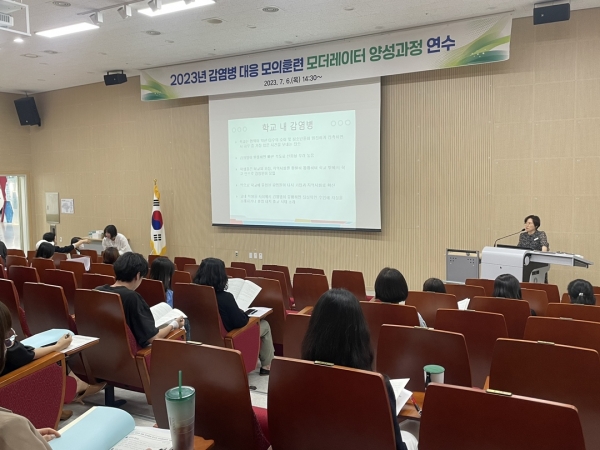 [충청뉴스큐] 충청남도아산교육지원청은 6일 충청남도교육청과학교육원에서 아산 초,중,고특수,각종 보건교사 총 81명을 대상으로 ‘2023년 학생 감염병 대응 모의훈련 모더레이터 양성과정 연수’를 실시했다.