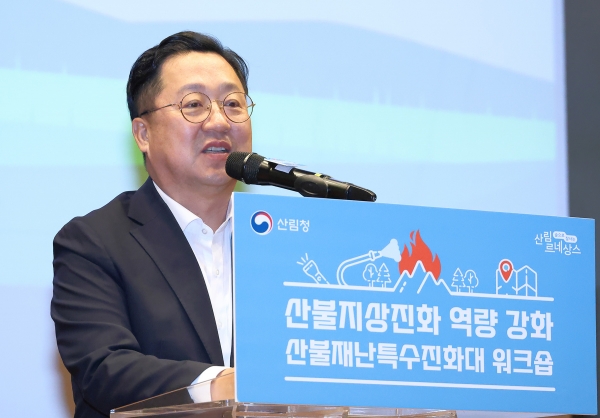 이장우 대전시장이 11일 오전 KT인재개발원에서 열린 산림청 전국 특수진화대 워크숍에 참석해 지난 4월 2일 발생한 산불 진화에 공헌한 산림청 특수진화대원 2명에게 표창을 수여했다.