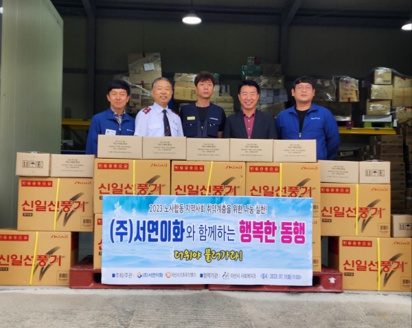 ㈜서연이화 아산공장 김종명 공장장은 “무더운 여름을 견딜 수 있도록 취약계층에 선풍기를 후원할 수 있게 되어 기쁘다”며 “꼭 필요한 가정에 전달되어 더운 여름을 건강하게 보내시길 바란다”고 말했다.