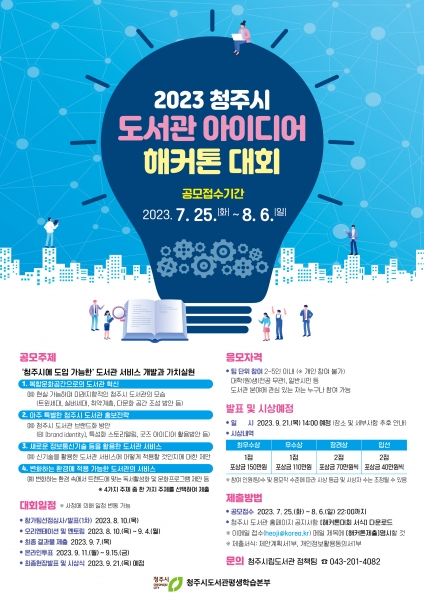 [충청뉴스큐] 청주시립도서관은 ‘청주시 도서관 아이디어 해커톤 대회’ 참가자를 모집한다고 14일 밝혔다.