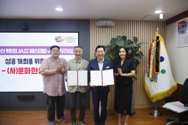 이재진 문화현상 이사장은 “이렇게 공식적으로 축제의 성공개최를 위한 협약체결은 처음이라 책임감이 크다”며 “좋은 파트너가 돼서 아산시가 재즈로 멋지게 변화하는 데 도움이 되길 바란다”고 환영했다.