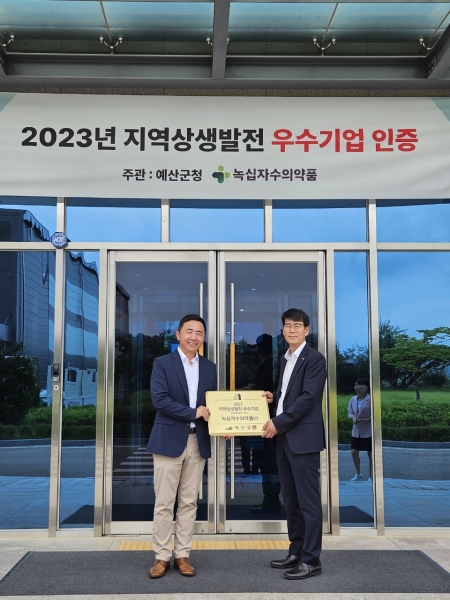 [충청뉴스큐] 예산군은 군과 기업의 상생발전에 기여한 녹십자수의약품㈜, 예산농산㈜, ㈜나이스엘엠에스 3개 기업을 ‘2023년도 지역상생발전 우수기업’으로 선정하고 현판을 전달했다고 14일 밝혔다.
