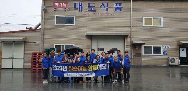 [충청뉴스큐] 적십자옥천지구협의회 회원 12여명은 16일 어려움을 겪는 기업을 돕기 위해 옥천읍 양수리에 있는 대도식품에서 포장작업 활동을 실천했다.