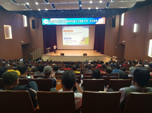 [충청뉴스큐] 예산군은 지난 17일 군청 추사홀에서 예산군 직접일자리 사업 근로자와 담당자 등 250여명을 대상으로 산업안전 및 중대재해 예방 및 안전의식 고취를 위한 ‘2023년 하반기 직접일자리사업 안전보건 교육’을 실시했다.