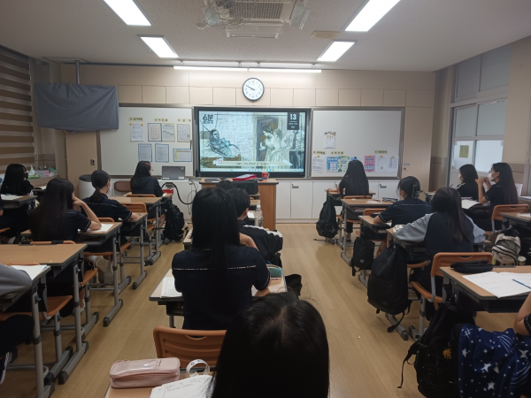 이번 고전 읽기 프로그램은 ‘아산시 고전 읽기 지원 사업’의 일환으로 학습 이완기 국어 수업 시간을 활용해 교사와 함께 고전을 읽고 생각을 나누며 진행되고 있다.