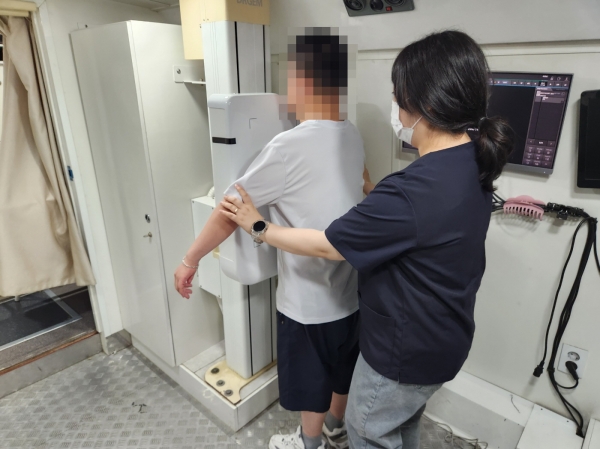 검진은 대한결핵협회 이동 검진차에서 흉부엑스선검사를 촬영했으며 추후 영상판독을 통해 결핵 유증상자는 추가 흉부 엑스선 및 객담 검사를 통해 최종 판정을 하고 투약 대상자 치료·관리를 하게 된다.
