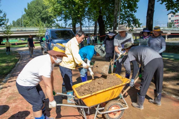앞서 19일은 이재영 증평군수를 비롯해 곽홍근 부군수, 군 직원 40여명이 보강천 미루나무 숲 및 체육공원 수해복구 현장에 투입되어 토사 및 잔해물 정리 작업을 했다.