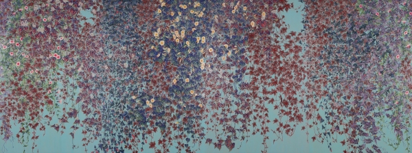 자연에서 본 다양한 색을 동양화의 채색과 금분, 은분을 이용해 화면 가득히 풀어낸다.