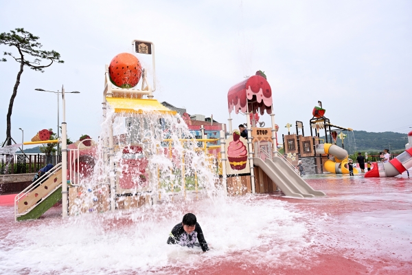 아이들이 신나게 물장구칠 수 있는 ‘여름철 놀이터’이자 가족이 함께할 수 있는 힐링 공간으로 꾸며진 물놀이장은 총 1,920㎡ 규모로 조합 놀이대, 딸기 슬라이드, 워터드롭, 워터 레볼루션, 워터터널, 워터건 등 다채로운 놀이시설 인프라를 갖추고 있다.