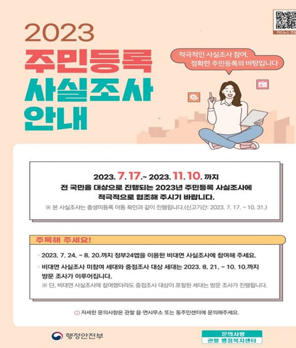 이번 사실조사는 정부24 앱을 통한 비대면-디지털 조사를 진행한 이후, 이·통장 및 읍·면·동 공무원이 거주지에 방문해 확인하는 방식으로 조사가 진행된다.