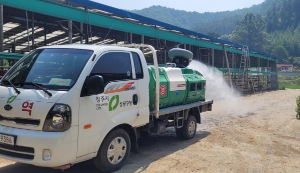 [충청뉴스큐] 청주시는 집중호우 이후 가축전염병 전파 차단을 위해 가용자원을 총동원해 수해 지역 축산농가 등에 집중 소독을 실시하고 있다고 26일 밝혔다.