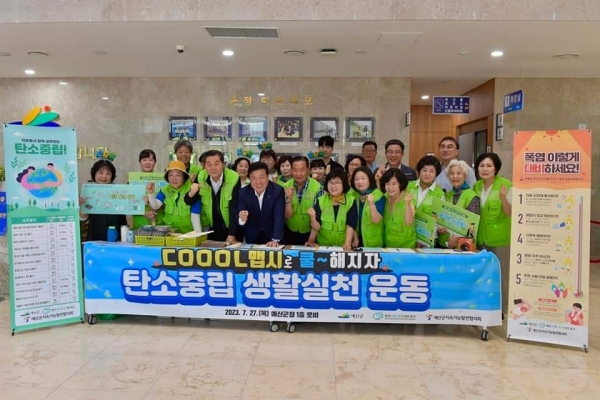 [충청뉴스큐] 예산군 지속가능발전협의회는 지난 27일 예산군청 로비에서 탄소중립 실천 문화확산을 위한 탄소중립 생활실천 홍보 캠페인을 개최했다.