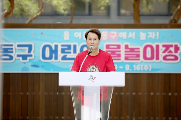 [충청뉴스큐] 이상래 의장은 28일 대전시 동구 대학로 40에서 개최된 ‘동구 용수골어린이공원 물놀이장 개장식’에 참석해 박희조 동구청장 등 내빈과 인사를 나누고 축사를 통해 “다양하게 마련된 물놀이 시설에서 아이들의 웃음과 함께 시원한 여름을 보내길 바란다”며 “대전시의회도 어린이가 안전하고 행복한 대전을 만들기 위해 다방면으로 노력하겠다”고 말했다.