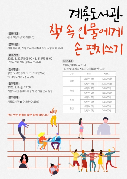 [충청뉴스큐] 계룡시가 ‘책 속 인물에게 보내는 손 편지 쓰기’ 접수를 받는 다고 밝혔다.