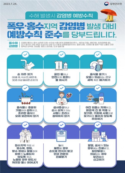 야간에 야외 활동 자제하기밝은 색 긴 옷을 착용, 기피제 4시간마다 뿌리기가정 내 방충망 정비 캠핑 등 텐트에 모기장 사용하기집주변 웅덩이 등 고인 물 없애기표준 예방접종일정에 맞춰 접종할 것상당보건소장은 “모기 출현이 많은 논이나 돼지 축사 인근 등 위험지역에 거주하는 사람은 반드시 백신을 접종하고 외출 시 일본뇌염 예방수칙을 준수해달라”고 당부했다.