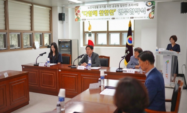 앞서 ‘다함께 찬찬찬’ 사업은 2021년부터 제천시실버복지관에서 시범운영을 통해 그 효과성과 만족도를 입증했고 우리지역 노인의 건강하고 안정적인 식생활 유지와 사회적 고립감을 예방하기 위해 이번 협약을 계기로 세 기관이 실적적인 협력 활동을 통해 적극적으로 추진 해 나갈 예정이다.