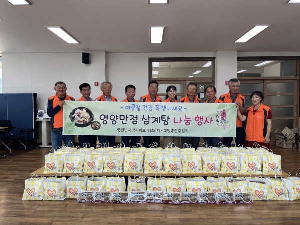 [충청뉴스큐] 서천군 종천면지역사회보장협의체와 희망종천후원회가 지난달 31일 관내 취약계층 어르신 50가구를 대상으로 삼계탕 나눔 행사를 펼쳤다.