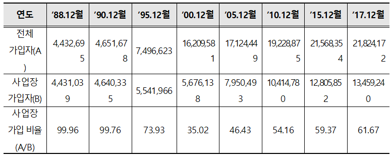 그동안 일반일용근로자가 월 8일 이상 근로할 경우 사업장 가입대상이 되는 것과 달리, 건설일용근로자는 월 20일 이상 근로를 해야 사업장 가입대상이 되어 국민연금 사각지대에 있는 문제가 지속적으로 제기되어 왔다.