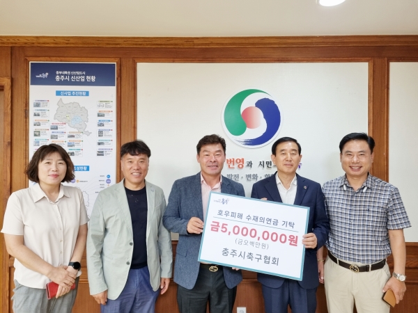 이날 전달된 수재의연금은 충주시축구협회장 및 동호인들이 십시일반 모아 마련된 것으로 호우피해를 입은 가정과 피해복구를 지원하는 데 쓰여질 예정이다.
