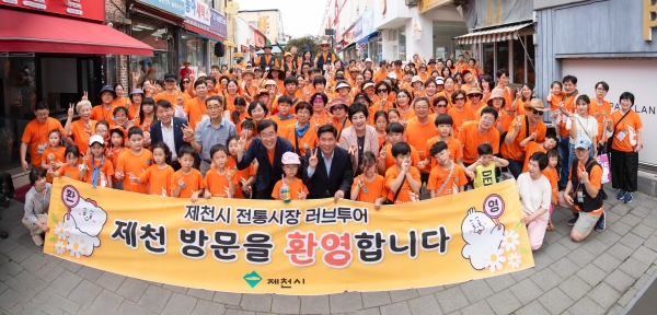 [충청뉴스큐] 제천시가 지역경제활성화를 위해 추진하고 있는 전통시장 러브투어가 올해 2만명을 맞이해 지난 31일 중앙시장에서 환영식을 가졌다.