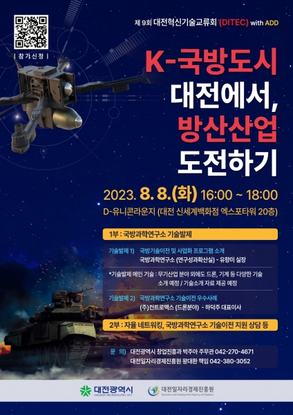 특히 지역기업인 ㈜컨트로맥스가 국방과학연구소의 국방드론 기술을 이전받아 성공한 사례를 발표하는데, 일반 기업들도 방산산업으로 전환할 수 있다는 자신감과 비전을 공유하는 시간이 될 것으로 보인다.