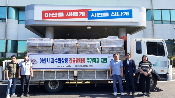 시에 따르면 4차, 5차 방제 약제는 수령 즉시 살포가 가능하도록 생육기에 사용이 가능한 약제를 선정했고 6차 방제 약제는 과실을 수확한 후 사용이 가능한 약제를 선정해 공급한다.