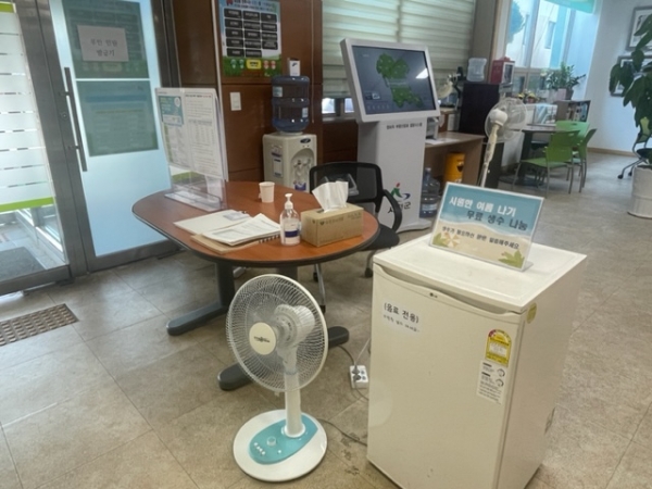 서천읍은 행정복지센터 출입문 앞에 냉장고를 비치해 청사를 방문하는 민원인들을 비롯한 방문객들에게 생수를 나눠주고 있으며 폭염이 잦아드는 8월 말까지 무료 생수 나눔 행사를 이어갈 방침이다.
