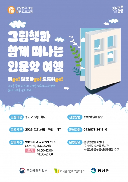 [충청뉴스큐] 음성군은 성인 대상으로 실시되는 ‘그림책과 함께하는 인문학 여행’ 인문프로그램을 개강했다고 9일 밝혔다.