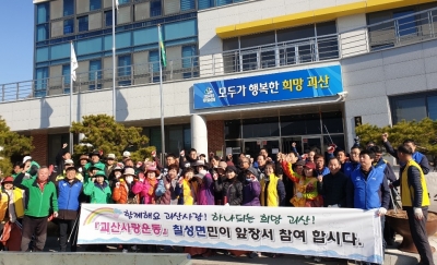 [충청뉴스큐] 충북 괴산군 칠성면은 14일 칠성면사무소에서 주민자치위원회, 리우회, 새마을지도자협의회, 바르게살기위원회, 한수원괴산수력발전소 등 20여 개 기관·단체 회원과 지역주민 등 400여 명이 참석한 가운데 ’괴산사랑운동 실천 결의대회‘를 개최했다고 밝혔다.