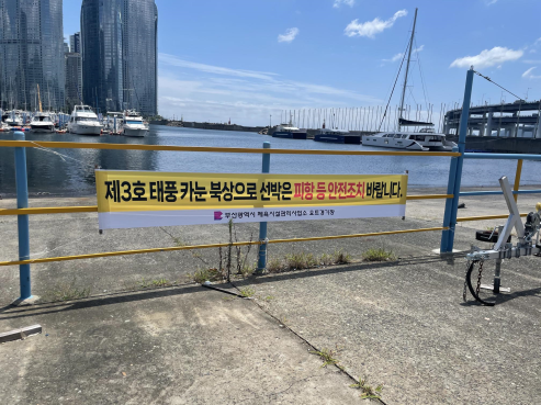 [충청뉴스큐] 부산시 체육시설관리사업소는 제6호 태풍 ‘카눈’이 북상함에 따라 육·해상 계류 선박들에 대해 피항명령을 내렸다고 밝혔다.