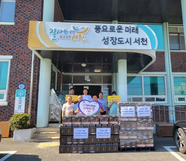 [충청뉴스큐] 서천군 서면주민자치회 회원들이 마을별 경로당 무더위쉼터를 이용하는 어르신들께 도시락김 480박스를 후원하며 ‘2023 함께 피워요, 나눔의 꽃 제17호’로 선정됐다.