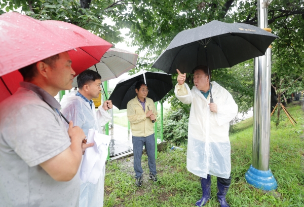 한편 10일 이범석 청주시장은 남촌1배수문, 모충1배수문, 송절배수문, 석화2배수문 등 현장을 찾아 배수상태를 살펴보고 배수펌프가 정상적으로 가동하는지, 예비양수기 배치 유무 등을 점검했다.