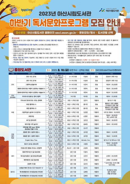 아산시립도서관 관계자는 “다양한 주제의 독서문화프로그램으로 유익함과 즐거움을 얻어가시길 바란다”고 말했다.