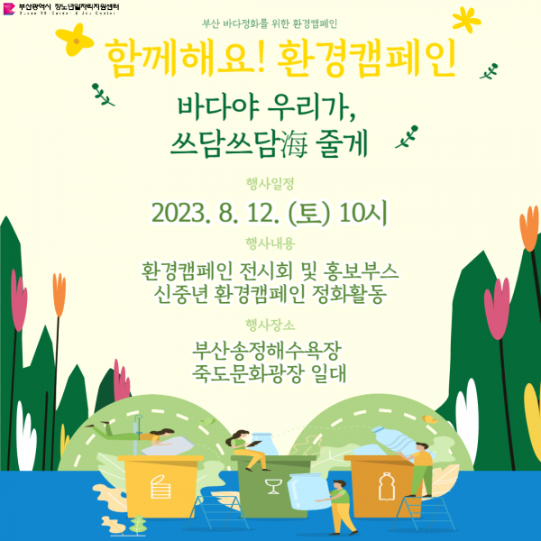 [충청뉴스큐] 부산시는 오는 12일 오전 10시 송정해수욕장 죽도문화광장 일대에서 5060 신중년 세대 해양정화활동 및 환경캠페인 ‘부산 해양 쓰담쓰담해’를 개최한다고 밝혔다.
