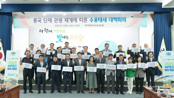 제주도는 11일 오전 11시 제주도청 본관 4층 탐라홀에서 오영훈 지사 주재로 ‘중국 단체관광 재개에 따른 수용태세 관리대책 회의’를 개최했다.