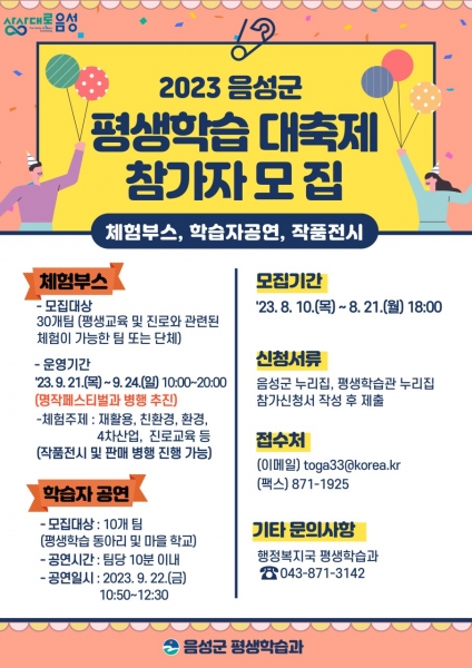 [충청뉴스큐] 음성군이 2023년 음성군 평생학습 대축제 참여자를 모집한다.