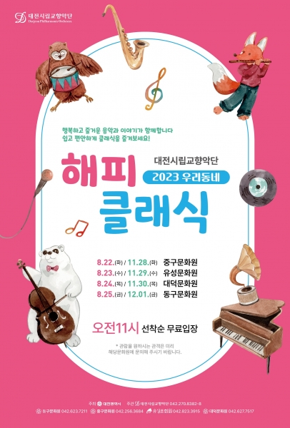 한편 대전시립교향악단은 올해 각 구 문화원과 공동으로 8월과 11월에 모두 8차례의 우리동네 해피클래식 공연을 진행한다.