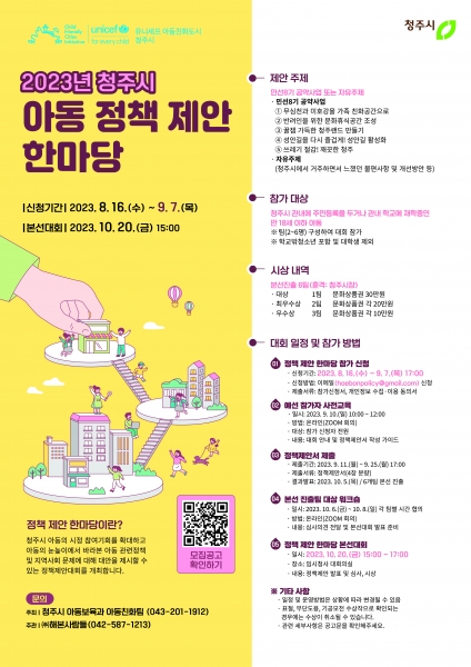 [충청뉴스큐] 청주시는 '2023년 청주시 아동 정책 제안 한마당' 참가팀을 모집한다고 16일 밝혔다.
