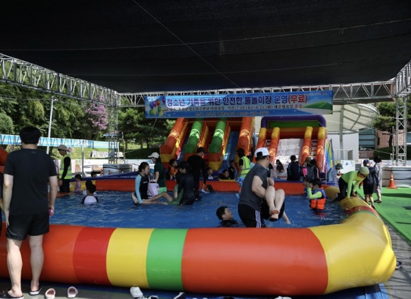 이 물놀이장은 지난달 29일 개장해 지금까지 안전사고 없이 많은 이용객이 다녀갔으며 수질관리를 하기 위해 매일 물을 갈아주고 있다.