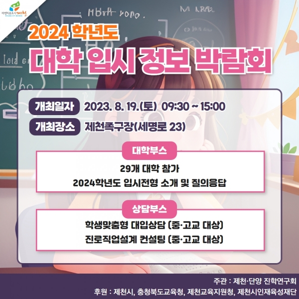 [충청뉴스큐] 오는 19일 제천·단양 지역 일반고 연합 2024학년도 대학입시 박람회가 제천족구장에서 개최된다.