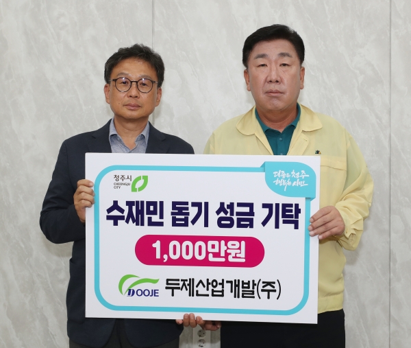 두제산업개발㈜은 청주시청을 방문해 수해를 입은 시민들을 위한 수재의연품 1천만원을 기탁했다.