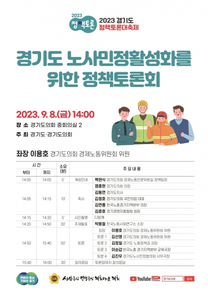 이용호 의원은 경기도 노사민정협의회 활성화를 위한 토론회를 9월 8일에 경기도의회에서 개최하기로 했다.