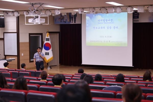 2023 을지연습과 연계한 이번 안보 강연회는 공직자의 안보 의식을 높이고 을지연습에 경각심을 갖기 위해 마련됐으며 ‘안보교육의 길을 묻다’라는 주제로 성무안보연구소 이성룡 교수의 강의로 이루어졌다.