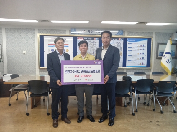 [충청뉴스큐] 온양고·아산고 총동문 골프동호회는 지난 22일 아산시에 취약계층 지원을 위한 성금 200만원을 전달했다.