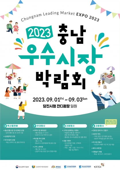 [충청뉴스큐] 전국시장상인연합회 충남지회가 주최하고 중소벤처기업부와 충청남도, 당진시가 후원하는 충남우수시장박람회가 오는 1일 당진시청 잔디광장 일원에서 개최된다.
