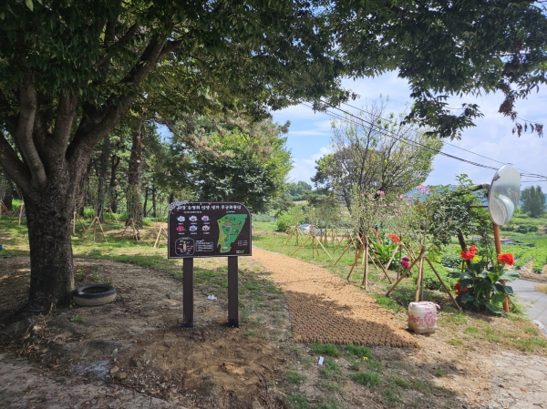 또한, 무궁화 생육환경 개선 및 미관 향상을 위해 잡목 제거, 잔디 식재, 개비온 가벽 설치, 보행매트 포장 등 작업도 진행했다.
