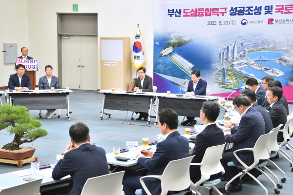 [충청뉴스큐] 박형준 시장은 8월 23일 오전, 부산시청 1층 대회의실에서 원희룡 국토교통부 장관 및 국토교통부 관계 간부들이 참석한 가운데 부산 도심융합특구 성공 조성 및 국토교통 지역 현안 등에 대해 논의했다.