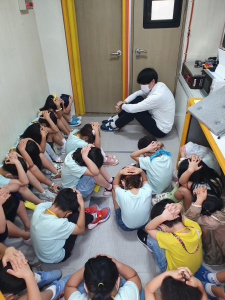 특수 차량 안에서 안전벨트의 중요성 교통안전표지판 등에 대한 교육과 애니메이션을 활용한 심폐소생술을 교육한다.